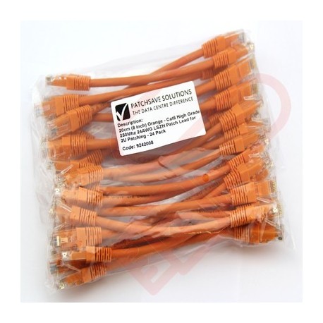 24 Pack of 15cm (6-inch) in Orange - Cat5e High Grade 125MHz 24AWG LSZH Patch Cables for 1U Patching