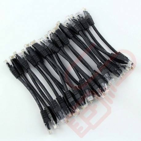 24 Pack of 20cm (8-inch) in Black - Cat5e High Grade 125MHz 24AWG LSZH Patch Cables for 2U Patching