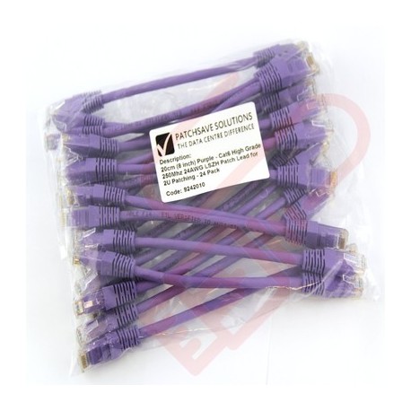 24 Pack of 20cm (8-inch) in Purple - Cat5e High Grade 125MHz 24AWG LSZH Patch Cables for 2U Patching