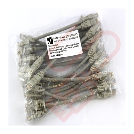 24 Pack of 20cm (8-inch) in Grey - Cat6 High Grade 250MHz 24AWG LSZH Patch Cables for 2U Patching
