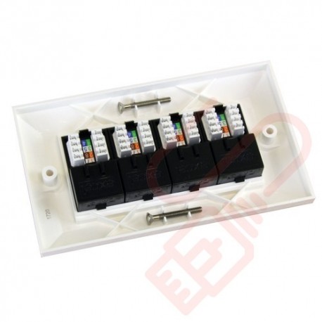 Excel Pre Loaded Double Gang Faceplates consist of 4x modules and an Excel bevelled faceplate. |
