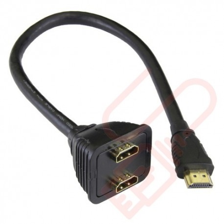 HDMI splitter 15cm cable adapter, male to 2 x female socket. Works by splitting the input of HDMI source to two displays.