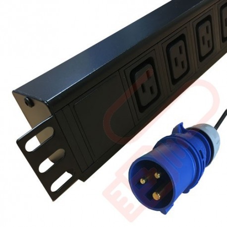 6 Way Horizontal PDU C19 Socket To 16 Amp Commando Plug