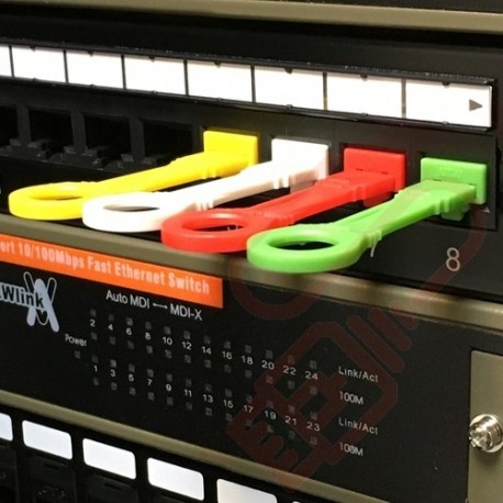 | Jacklocks are available in Red, White, Green and Yellow and are all colour coded with their own key. So only the Red Key will work with the red locks. Jack locks don't just stop unauthorised use of ports but can also help organise networks. | |