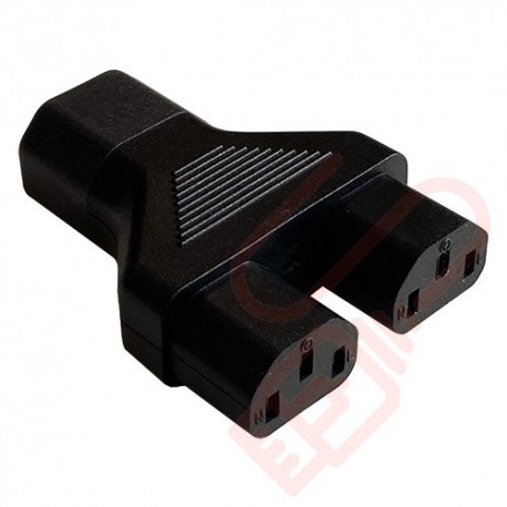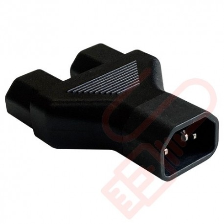 C14 to 2x C13 splitter adaptors allow two pieces of equipment to be powered from one power source.