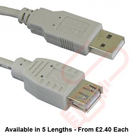 USB 2.0 Extension cable in various lengths, used to extend existing USB 2.0 cables.