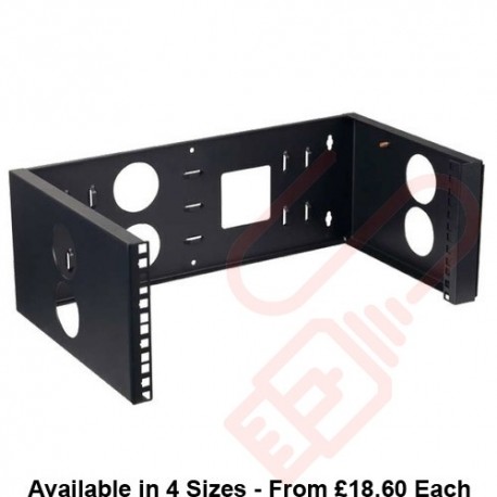 These 19" wall brackets, with 1 hinged mounting profile include cable access points through the back and side of the frame.